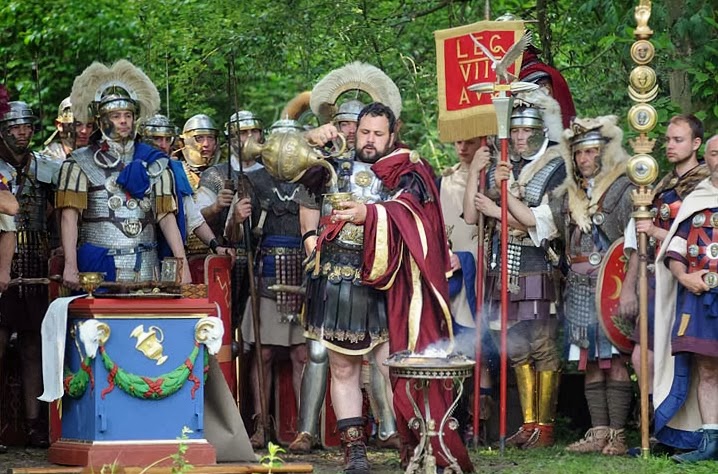 Reconstitution historique et archéologique du règne de l'Empereur Hadrien et de ces différents représentants d'Etat. L'association reconstitue les différents objets du pouvoir politique et spirituel et les enseignes du prétoire suprême romain.